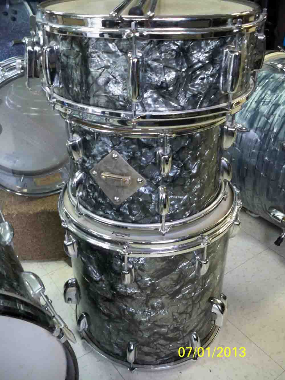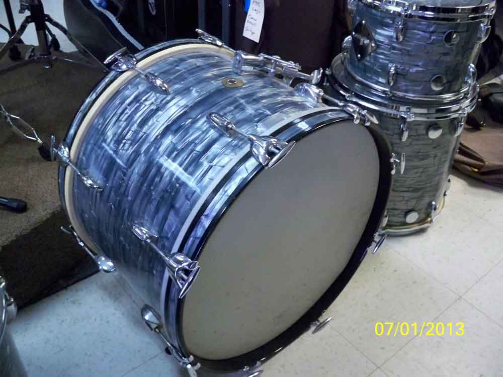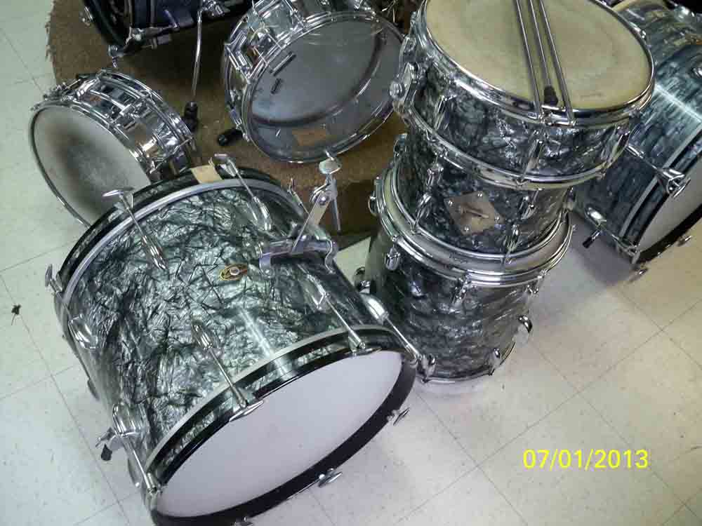 Hi All, I took a quick look at these drums and was amazed. Slingerland 4 piece with an18" bass drum and matching Artist snare.! And a Gretsch Round Badge 3 piece! All in excellent condition. I got some quick pics,because my bud is going on vacation for a week. What is there worth roughly? I ask because 1,I have never seen an 18" slingy bass drum before even on Ebay. And 2, I am not that familiar with Gretsch. Silver sealer and tags inside all intact in perfect condition. I don't think these drums were ever opened except to change a head. Stored for 40 years in soft cover bags!