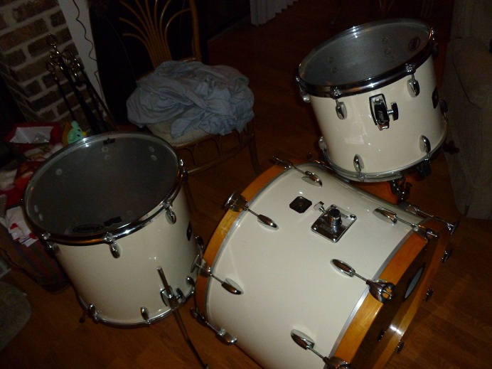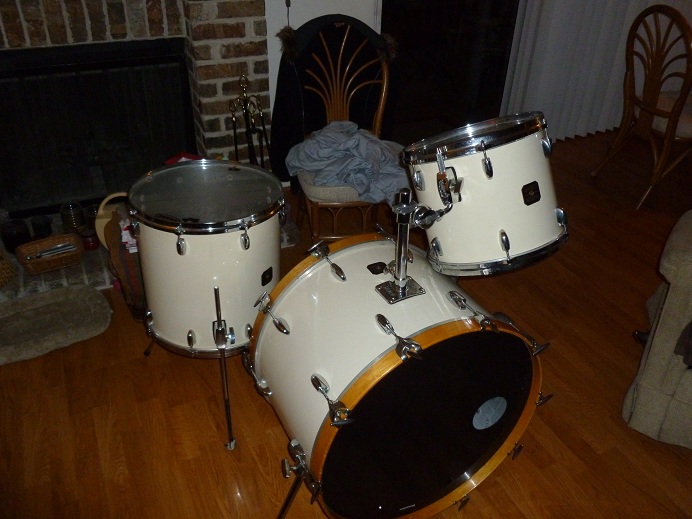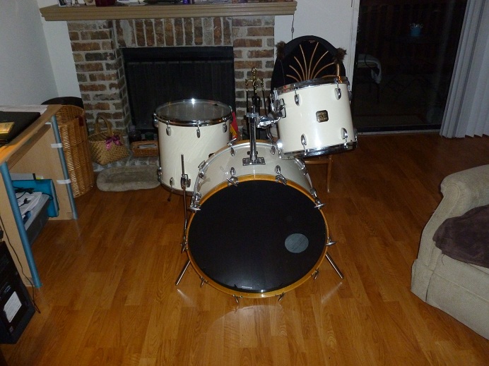 This is a very clean Gretsch square badge kit in a white nitron wrap, all original, silver sealer with all tags, die cast hoops and jasper shells, thanks.