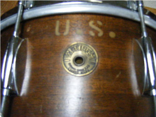 It also has "U.S." stenciled just above the Gretsch round badge. I remember seeing a recent thread about another drum that had the same stencil, but I can't find it. It was thought to have been used in some branch of the U.S. military. If true, imagine the stories this drum might be able to tell. Think about all of the clubs, advancement ceremonies and patriotic scores this drum has accompanied and where it has traveled? Talk about mojo!