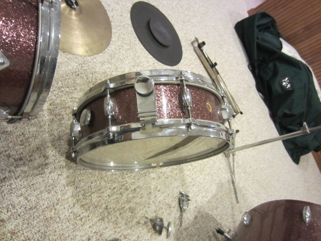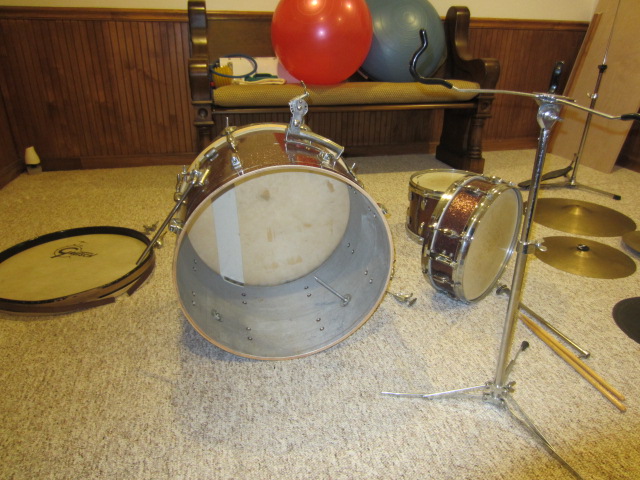 A friend of mine told me he had a set of Gretsch drums in his basement that he got when he was 8 yrs old, he is 58. He told me he got them used from a family friend, took lessons but became more interested in sports and put them away. His kids played them when they were young, but treated them more like toys and that might explain a few of the missing parts.
