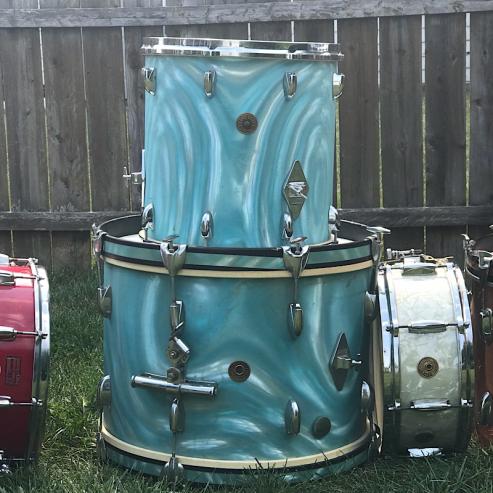 Up for sale is a Gretsch round all original floor tom in the rare 14’ size, and a 20’ bass both in the original aqua satin flame finish! These drums are 100% there and all original even still having the original batter and reso heads on both drums. Has the common scratches that are conducive with this finish but little to no fading and 0 cracking or spiderwebbing. Stickers are both on the interior of the drums and in excellent shape as is the original painted silver interior. Please reach out to me at 937-516-2952 via text with any interest or questions or feel free to reach out to me on here but be aware that’s going to be a little more challenging without receiving notifications with messages. Thanks happy Monday! Asking $2000 obo