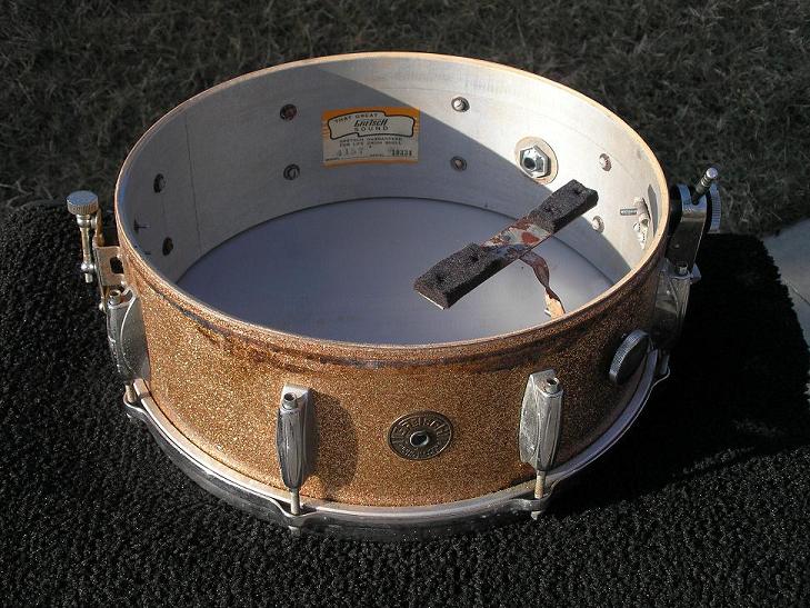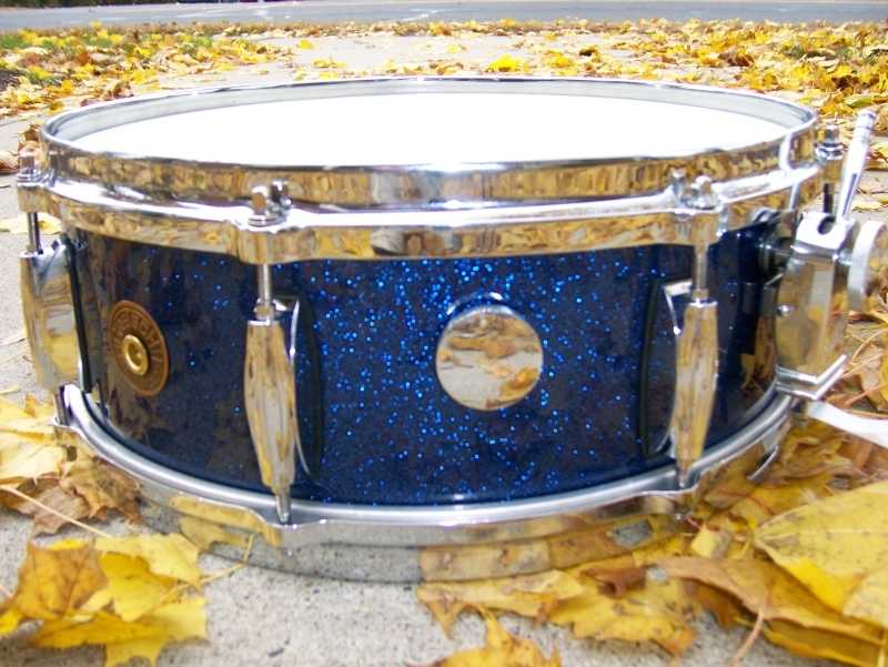 I'll upload pictures of it tonight.---------As promised.Gretsch 1966?Microsensitive Throw, 4 point adjustable butt.5x14, 8 lug "Midnight Blue Sparkle"Bought at local drum store in 1969, 6 of the 8 lugs missing, replaced.All other parts original.