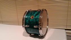 Check out these beauties. I've never see that color on a small set, and have never seen it on a round badge set. All the similar finishes like emerald green pearl seem to have been on stop sign badge era drums. They also have had metal hoops on the bass drums.