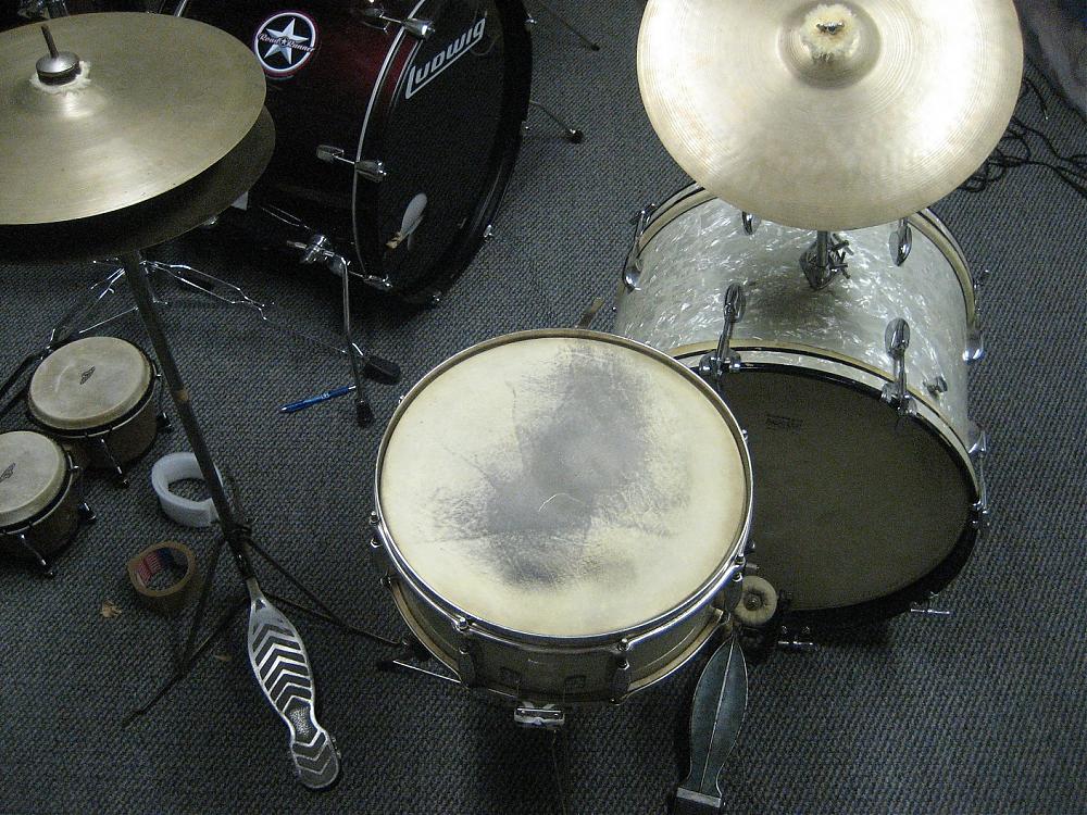 --The bass is a 1950's gretsch with all the original parts and orginal Singerland calf skin heads.
