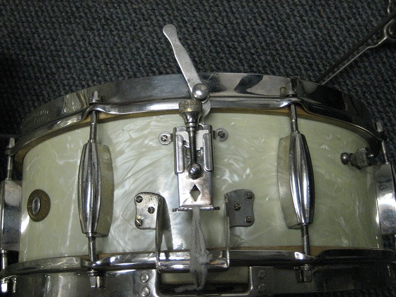 --The snare is a 1950's Singerland radio king with all the original parts and original calf skin heads.