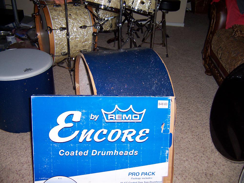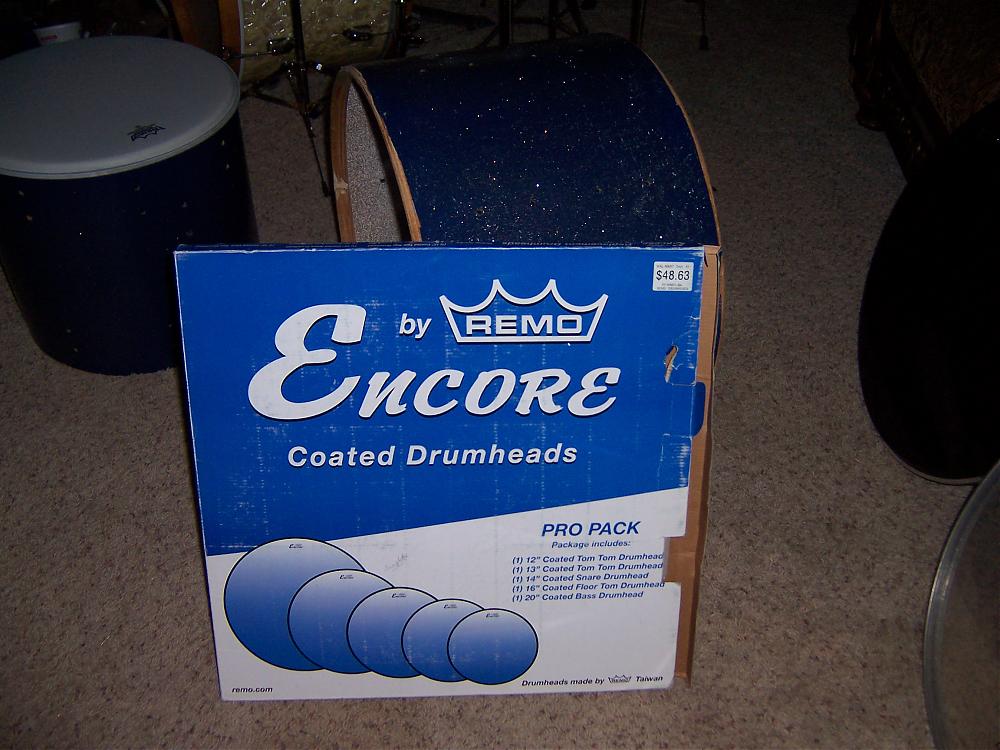 I looked at this link, this is not the Encore pack, per se, that I bought. This (set in link) is an American set of pinstripes and for some reason are called "Encore". The ones I got had a WalMart pre-printed price on for crying out loud...and the heads themselves are the good old Taiwanese made single plies. Thheyt just work with the MIJ shells. Now, they are either discon, or no longer imported, but they are about to be all he has in my drum room. I am not taking a chance on losing out as I happen to have spent a lot of time and mioney on heads and have been trying to get the right ones for the right sound and these just work. Look at all the stores that have been around for a long time that are old a dusty and have a ton of NOS stuff everywhere you look.