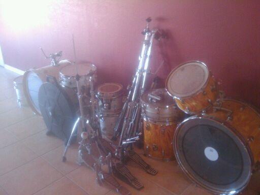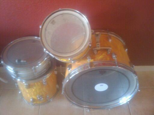 I've been perusing the forums for a while and I was going to start off with a different question but these drums have come up for sale and I was hoping someone could help me identify them. I know the pics are bad, but hopefully some of the eagle eyes around here can solve this mystery.