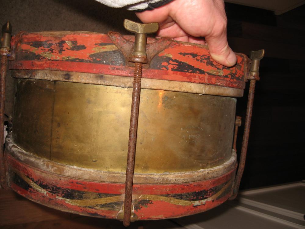 I have a single drum with the inscription Riviere & Hawkes Makers 25 L. Ficester SQ London. I cannot find it anywhere online or in other forums, and I have tried to research it thoroughly. . It looks like a marching drum from the hardware attached to it. The drum is made from wood, brass, and rawhide. It is red and black striped. Any ideas or thoughts would be great. I would just like to know the era, where actually from, and the value and a way to replace the rawhide to restore it. Thanks so much!