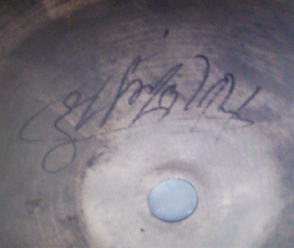 The hi-hats that he's got with his kit measure 11 inches. One is a K-Zildjian Constantinople made in Turkey (see pics 2 & 3) with some sort of signature on it and the other has a stamp of what appears to be some sort of sword on it (see pic 4). Any help on dating either of these as well as estimates on price would be greatly appreciated. THANKS!