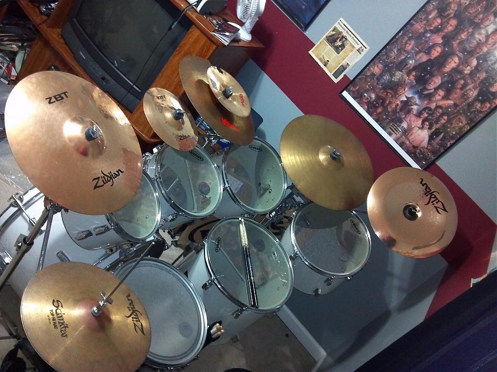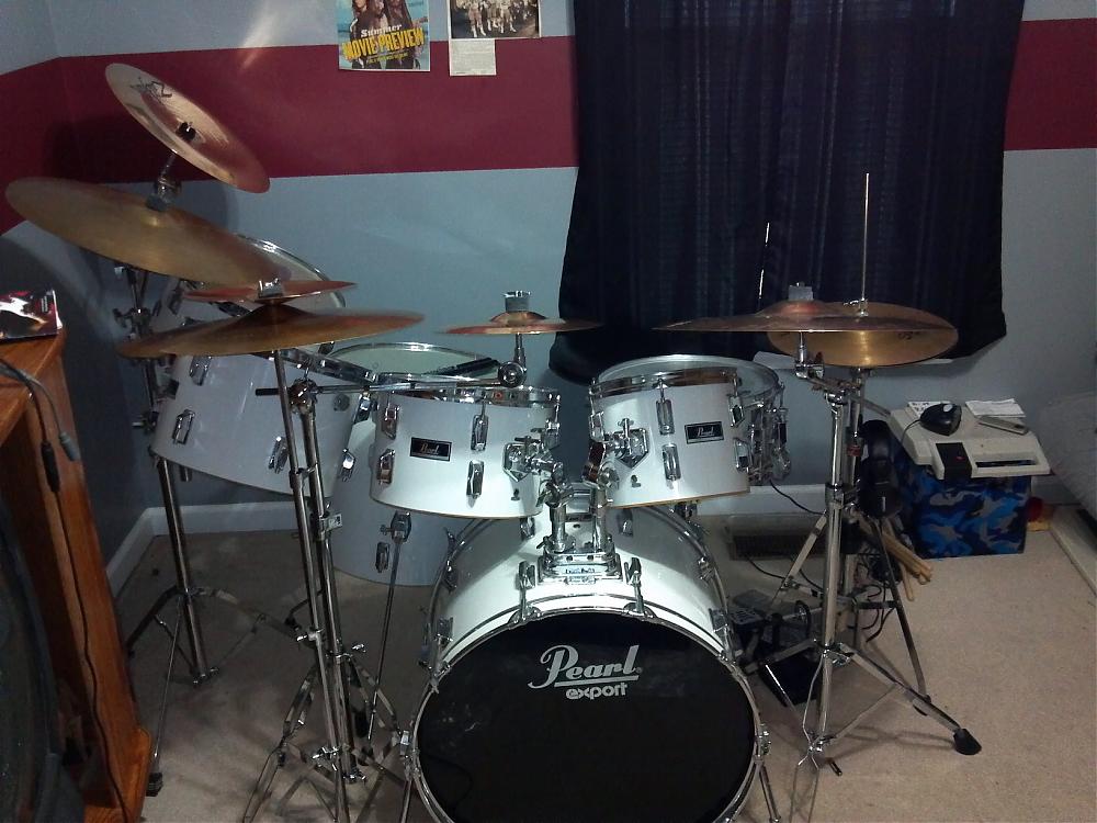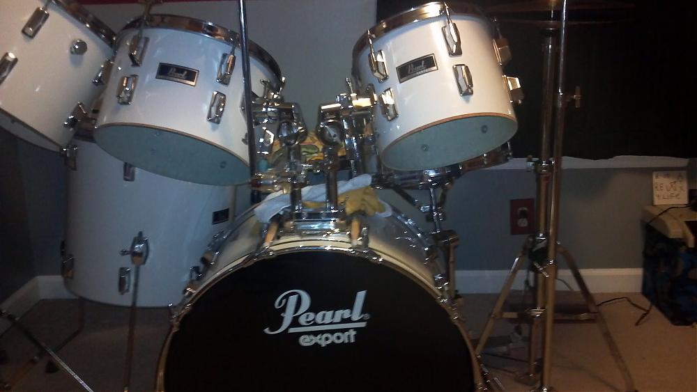 Hello first post here and I need some help. I bought this set for my son who is learning to play, funny story is i actually owned this same set and sold it when he was born to help pay for his medical bills (he was a sick baby), found them 13 years later and went to look at them and knew i was my old set( scratch's replaced parts, marks i made on them). Anyway i was told when i bought them used that they are Pearl Exports and that they where about 6 years old. I bought them in the early 90's so that would put them in the mid 80's range. I have been researching it trying to find bottom hoops for my son (the where off when i bought them) but am running into trouble finding the right one when i look for mid 80's export hoops. Please help me identify these drums.