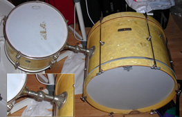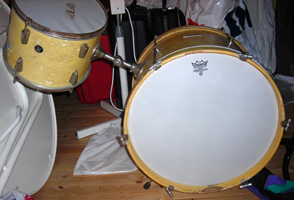I have a vintage set of which I don't know what it is. It consists out of a 20" bassdrum, a 12" x 10" tom and a 14" snare. It originally also had a floor tom which I have stupidly traded when I was younger!. The snare is a Trixon that was made from 1956 til '64.