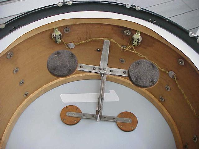 1937 - 1941 Radio King No. 306. The large streamline lugs were standard on Radio King bass drums in that period. The original factory tension rods were tympani handle style.