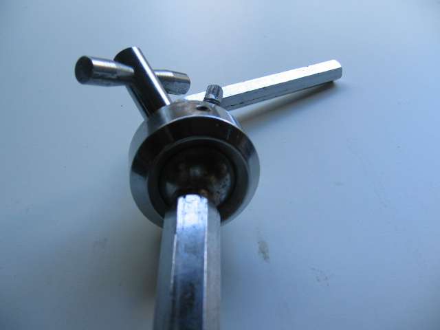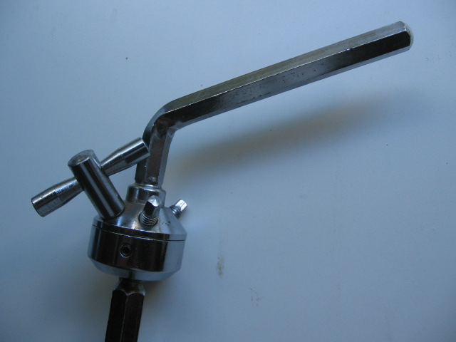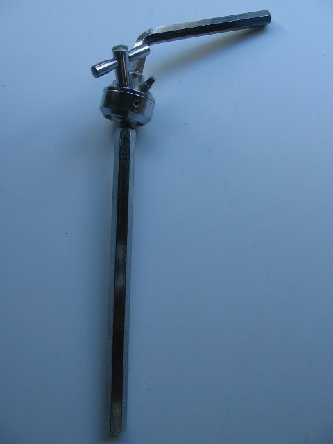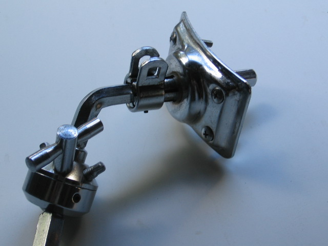 I recently acquired this vintage tom arm. As you can see by the photos, it has a hexagon-shape rod with a swivel arm (similar to that of the Rogers Swivomatic arm of the circa 1960's). The length of the Rod from bottom to the ballbarring is approx 9.5 inches and the width of the rod is approx 3/4 inch. You will also see the tom mount that came with it. The only word printed on the side is JAPAN. I am thinking it may be from an early Japanese stencil kit however, it does look remarkably like a Rogers tom arm and I'm sure will fit the Rogers drums perfectly. Any help identifying this would be greatly appreciated! Cheers Grant
