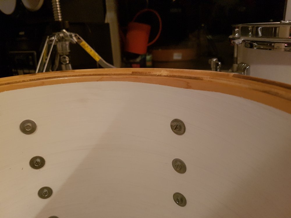 Just recently picked up a 22x14 Olive badge kick that came with 12x8 and 13x9 keystone toms from a guy, I'm not exactly sure what year they could be from as the serial numbers are 7 digits, guides online suggest they should have only 6? The kick seems to have a natural lacquered interior, toms are painted white but unsure if this was painted white from the factory? Seems a bit uneven. Toms look to be 5 ply, thick plies too. Any ideas?