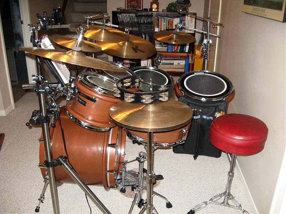 This set-up leaves me in a very comfortable and relaxed sitting position with minimal reach required to get to any of my cymbals. See thumbnail for layout.