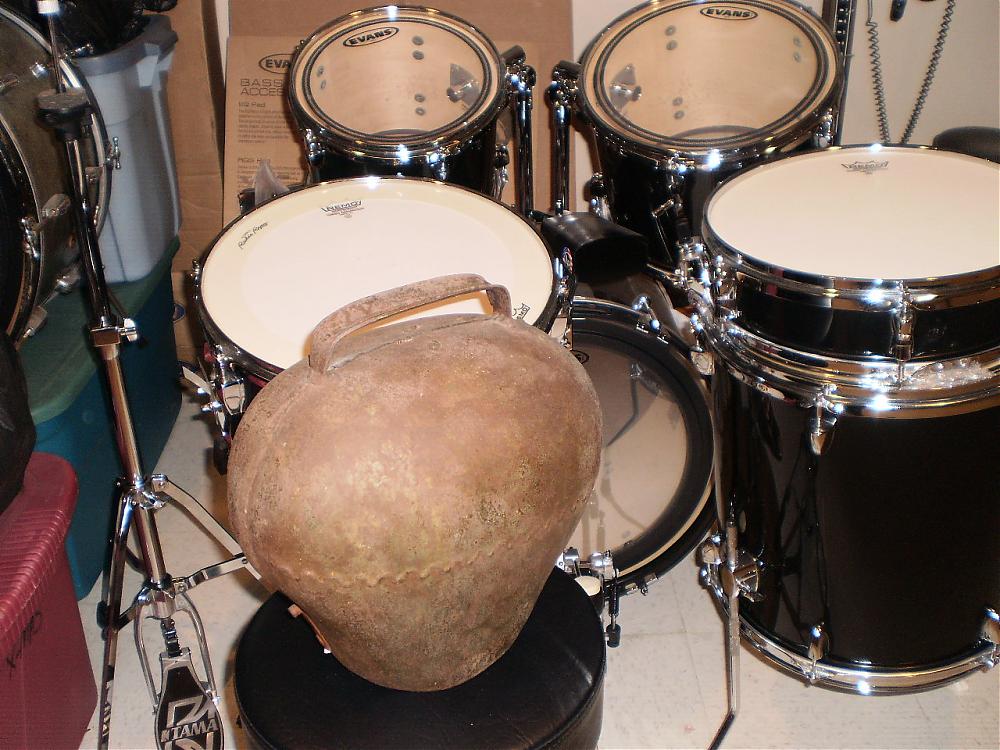 Okay, so I bought a couple swiss cowbells different sizes, others that weren't swiss, whatever. When this one showed up I couldn't believe it's size! It's not of course as big as the one pictured above but man....Okay...don't laugh... OK go ahead, where and how am I gonna mount this sucker! I need a heavy custom everything rack for several cowbells. HOLY COWBELL!!!!!!!! Mind Blowi
