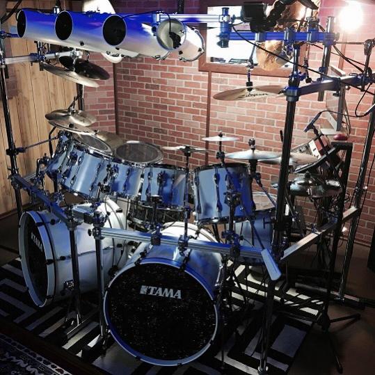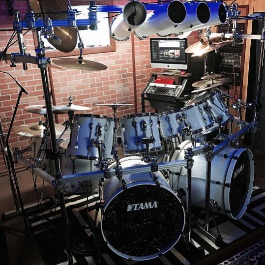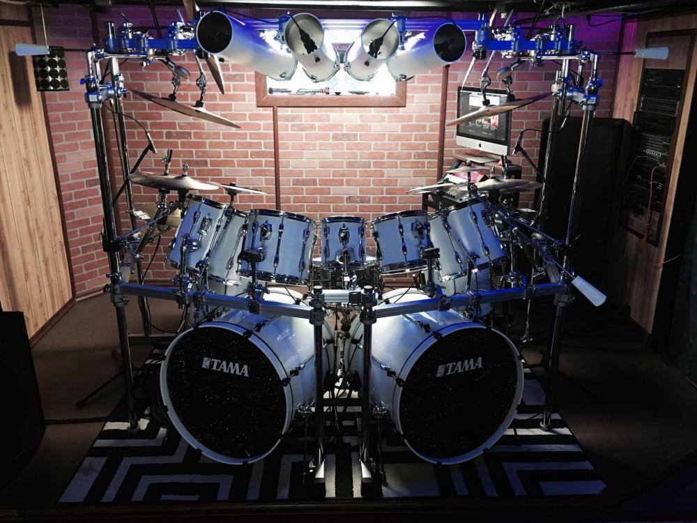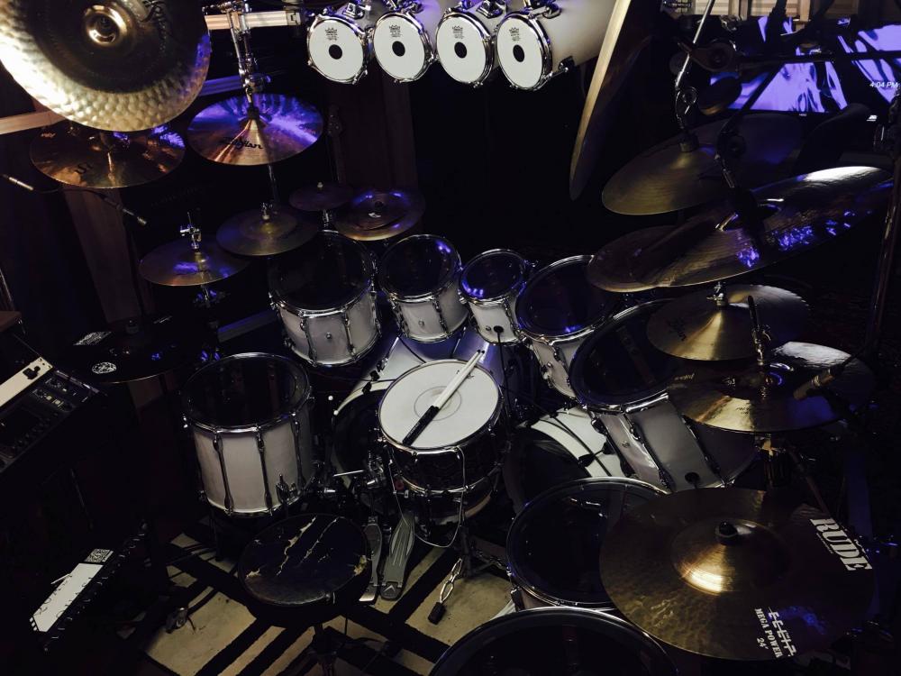 A customer sent some great pics of his humongous Tama kit, re-wrapped in our White Economy Drum Wrap