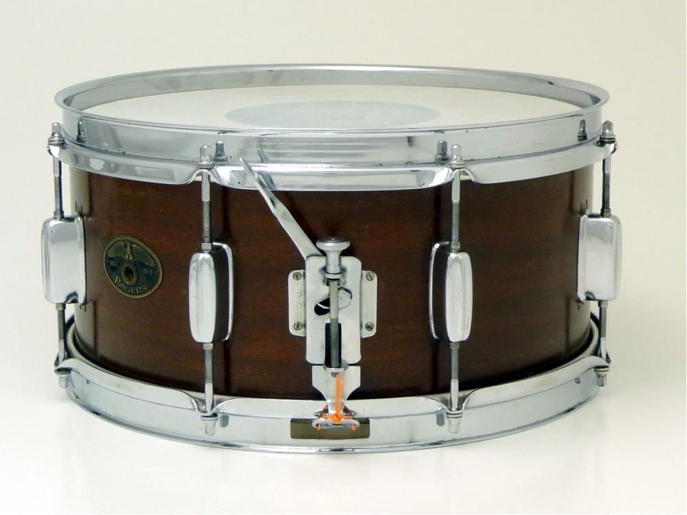 Hey Jonnistix! Yep, I thought the same about these strainers as well. Check out two of my snare drums with the same strainer. The difference is that the lever on the actual Rogers strainer bends the opposite way from the MIJ copy. The Blue Sparkle is an Apollo, which I've since sold. All original down to the King's Stone batter head! The silver sparkle Mitchel drum has already had the strainer cleaned, polished and the tension adjustment rod straightened. Oh yeah, this is the drum awaiting an air vent grommet!! No pressure of course! I also have a third snare drum, which is a Lyra in Oyster Blue, which was missing the same strainer. I found an actual Rogers strainer for it on eBay! Still need to put the Lyra together. Pics will be posted when done.