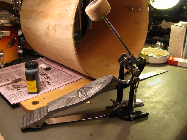 And, I used my Ludwig Downbeat snare drum tuned very high. It almost gave the effect of the Brazilian repenique drum -lots of contrast to the bass drum sound.