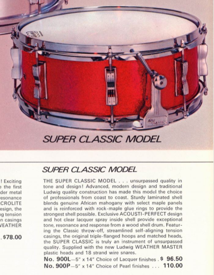 That should be a Ludwig Super Classic model. Even into the 70's they were still available in lacquer finishes as yours appears to be. Nice!