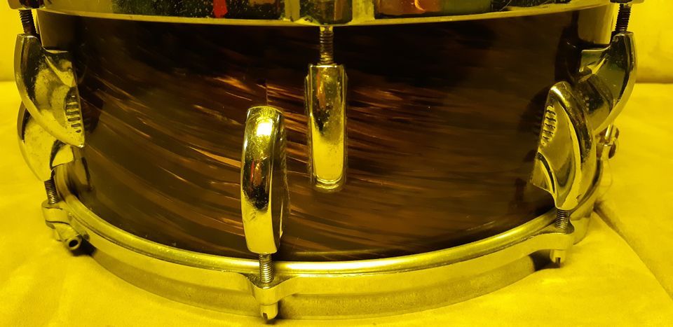 Just picked this up from a drummer in Norway...waiting for the shipment so only have pictures yet. Looks like an early Premier or UK made drum given the English style tension rods.