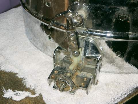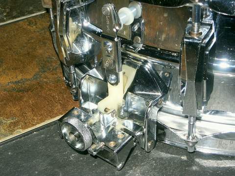 I just picked up an older Ludwig 5x14" chrome Super Sensitive snare today. It seems to be in pretty good shape. I'm cleaning/lubing it and replacing the heads which I have plenty of experience with, but I have a couple of questions for someone familiar with these drums.