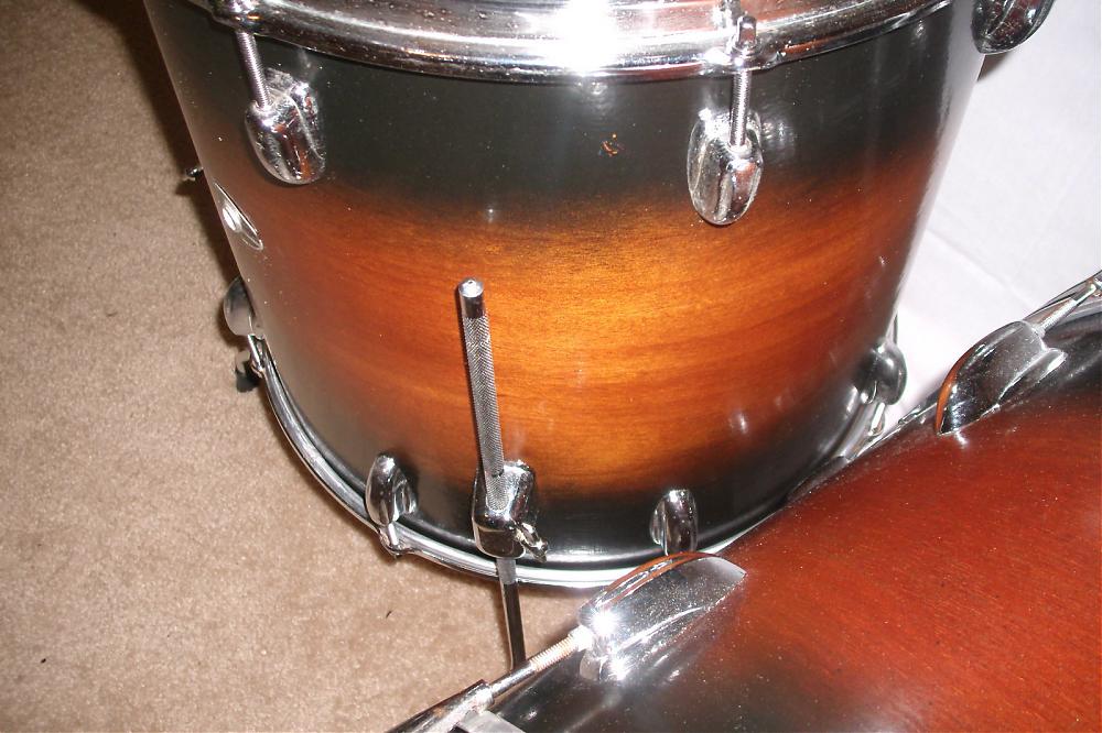 Is it safe to assume that this is not the original finish on this kit? I find it a little odd that none of the photos show the inside of the any of the badge grommets. In the photo looking down on the bass drum it appears that the inside of the grommet is pretty rough. I have also only seen the Slingerland logo ink stamp on the interior of 70's kits with concert toms, although I am not certain about this.
