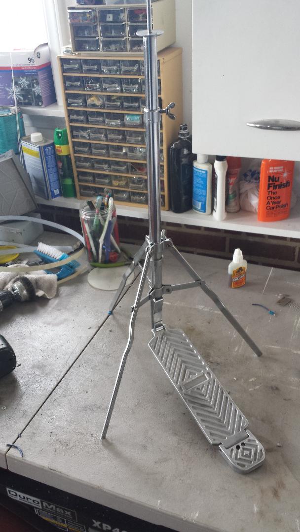 I checked the three KENT catalogs I have, and whereas they did offer TWO different model HH stands, neither look like the one you have here. But then, I remembered this from the Mark "Whitey" Cooper collection: This is a pic of a 1967 KENT drum set in BDP with hardware. Look at the pattern on the HH pedal. Looks a bit similar, no? I'd say the jury is still out on this one .. but .. this model is not shown in their catalogs. Probably MIJ I'm thinking, but interesting regardless!