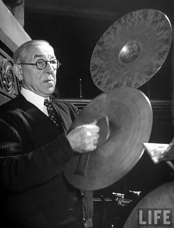 The former cymbal player from the Boston Metropolitan Symphony Orchestra playing a pair of 20" Constantinople K Zildjian cymbals bearing the Constantinople K. type zero trademark. That would mean that the date of manufacture for these would be from anywhere from 1865 to about 1912.