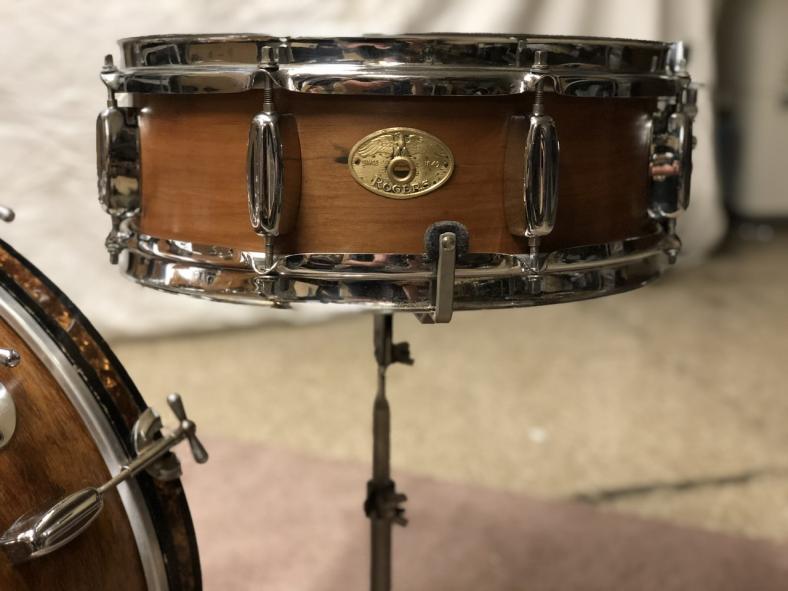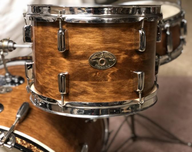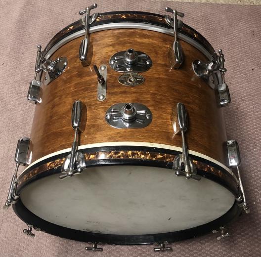 All paper tags close numbered. When I grabbed it the wrap was rewrapped and a mess. I stripped them and decided to match or as close as possible to the outer ply of the snare which seems to be Walnut. I gave the snare a natural coat of clear because I liked the color.. I then stained the other shells Walnut plus a Keller 14x14 shell I had to match.