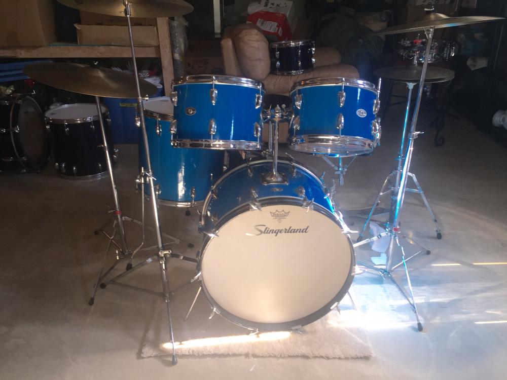 I am close to purchasing a four piece late 70's Slingerland drum set finished in Blue Gloss wrap. The kit is in very good shape with the exception of some lifting of the wrap on the floor tom. The shells are five ply without re-enforcement rings. I have owned several three ply Slingerland kits but not the five ply. Are these similar to the Ludwig's of the time? What would a fair price be without a snare? 22, 12, 13 and 16 in standard depth sizes.