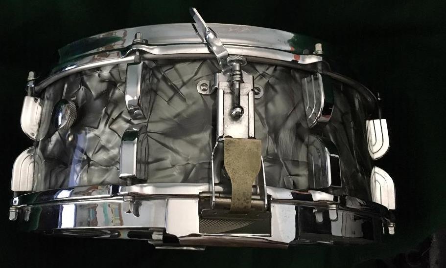 Very nice, all original condition. Strainer with bridges works smoothly. Has the original snares and tabs. Correct muffler knob works. Date stamp of Jan, 1955. Pretty clean...I haven't messed with it in 25 years. Just played it often on my home set. It's a very versatile snare...can be tuned up or down. Sturdy enough to gig with.