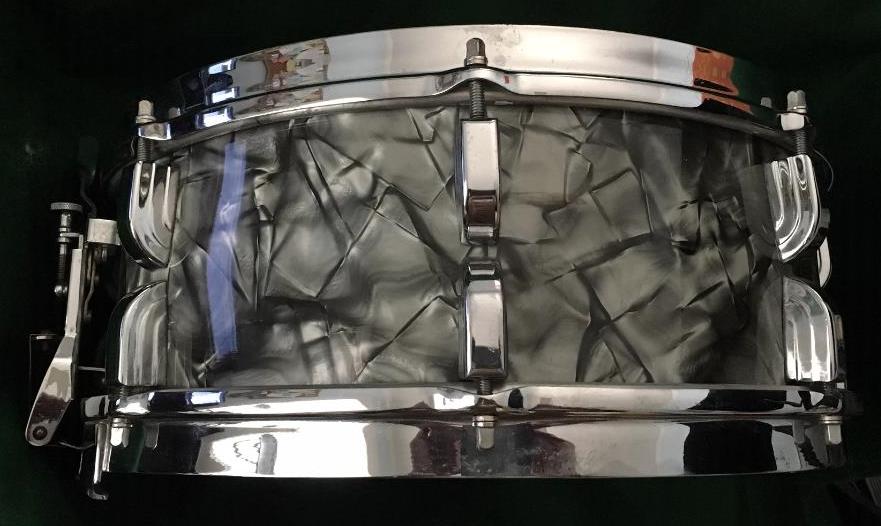 Beautiful 1955 Leedy and Ludwig Broadway in black diamond pearl with the harder to find chrome hardware. (Most of these have nickel) 5.5" x 14".
