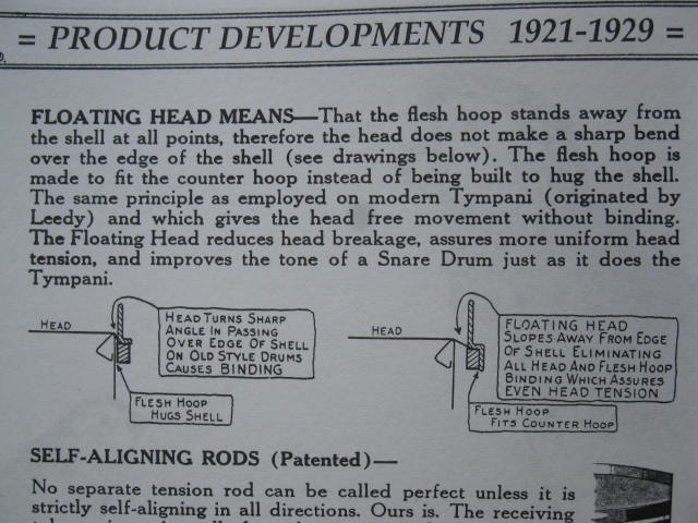 Leedy did, indeed, develop the "Floating Head " design, & it was a major point in their advertisement until the 40's.