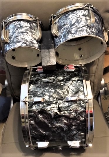 I just finished the bongo drum project. We are all in agreement that the Charcoal Diamond Pearl is not an exact match for the Slingerland/Leedy version of Black Diamond Pearl of my 1963 drum set. However, I think that it's a much closer match than the smaller pattern and darker BDP that's available. Here's a quick look at the bongos and the 9x13 tom from the drum set. They are more than close enough for me and for Rock n Roll.