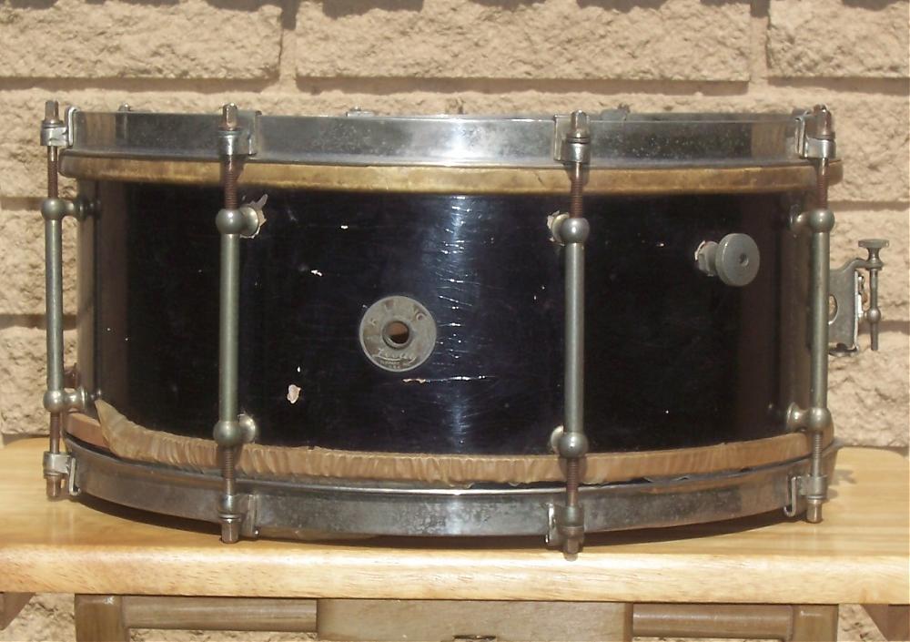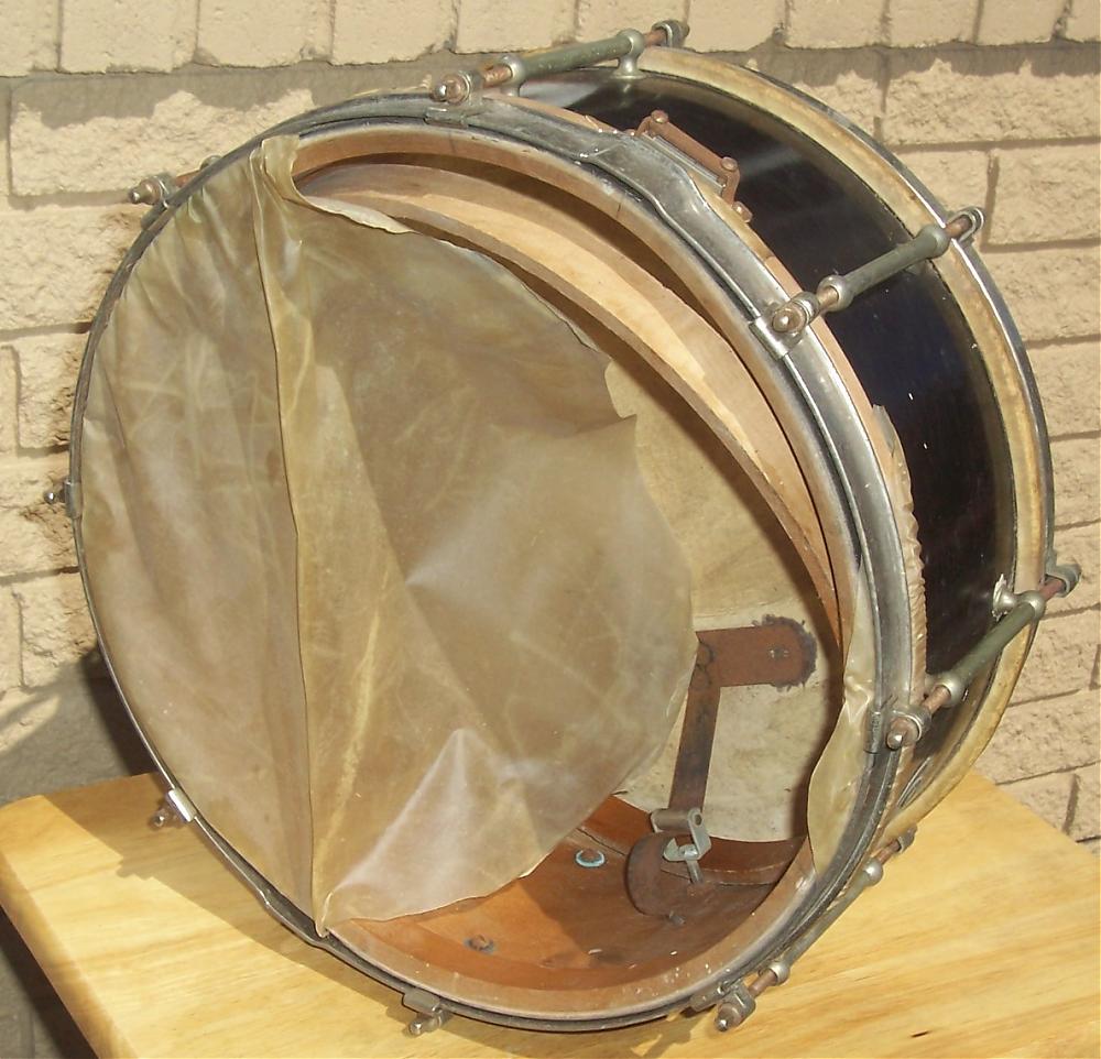 I recently picked up a vintage Leedy Reliance snare drum that, although having all its original components, needed repair work done to the shell itself (lifting issues)as well as the batter side wooden reinforcement ring, which had detached from the shell. The drum came in its original black lacquer finish, which was in pretty rough condition and the snare side head was severaly torn.