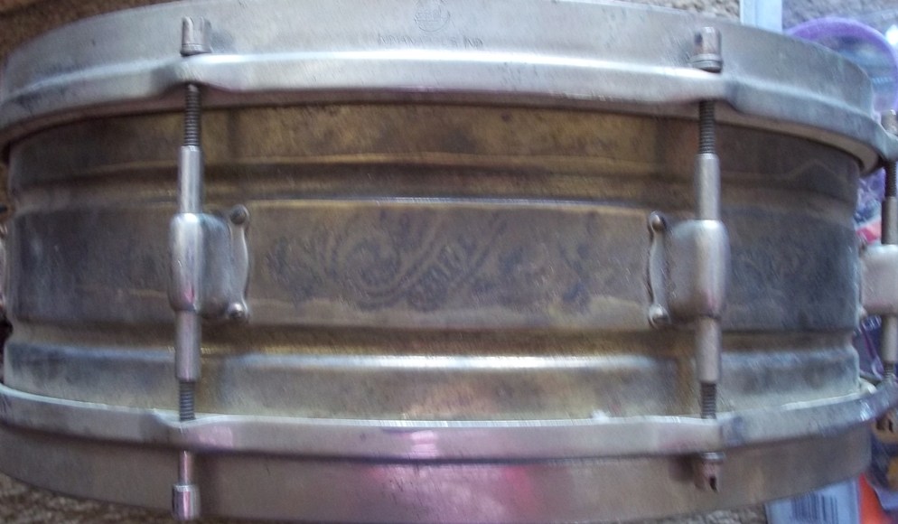 is marked Leedy, Indianapolis Ind on the hoop. It is engraved with