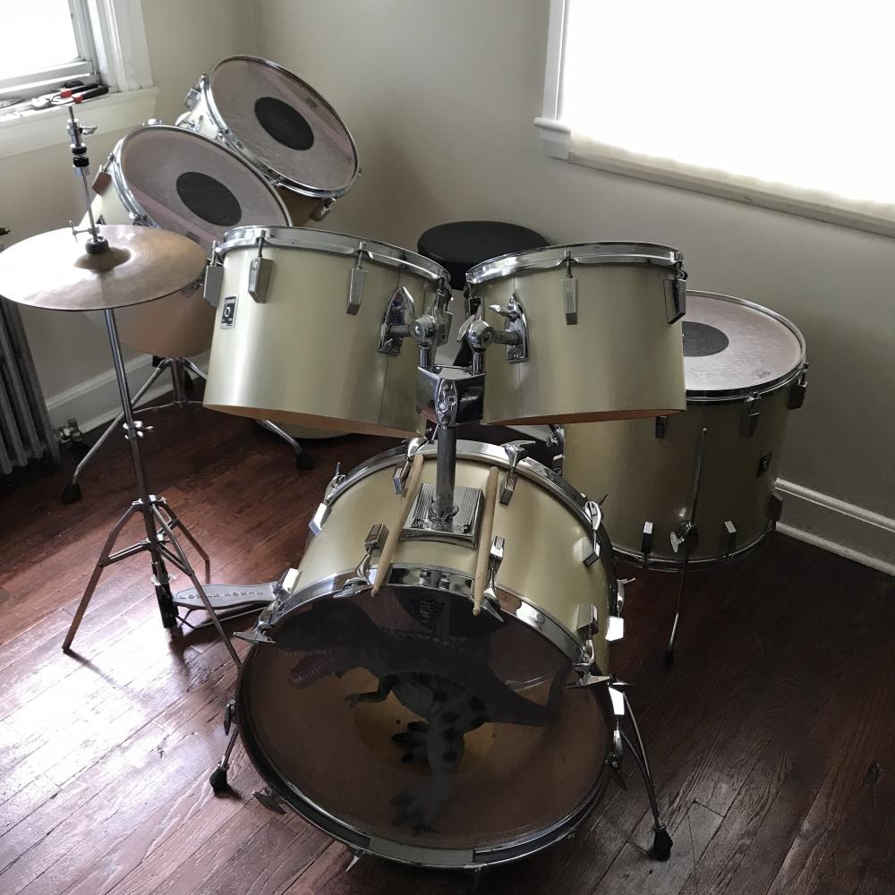 I'm seeing some great drums in your room! Is that a 12" deep Ludwig bass drum? The floor tom appears to be a Slingerland? What's the size? Looks pretty cool!