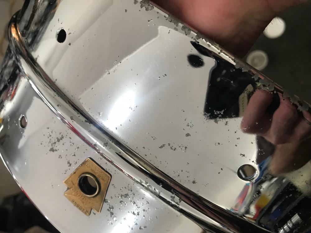 Not sure your depth into vintage drums, so I will state here: Please do not use steel wool on any chrome. In fact, if ever tempted to clean the chrome without full disassembly - don't do it. You don't want to scratch that wrap at all. Alot of info on here (and DFO) re: restoration. Take your time and do it right. That kit is very difficult to replace, especially difficult on the conscience if you damage it without a possible fix.