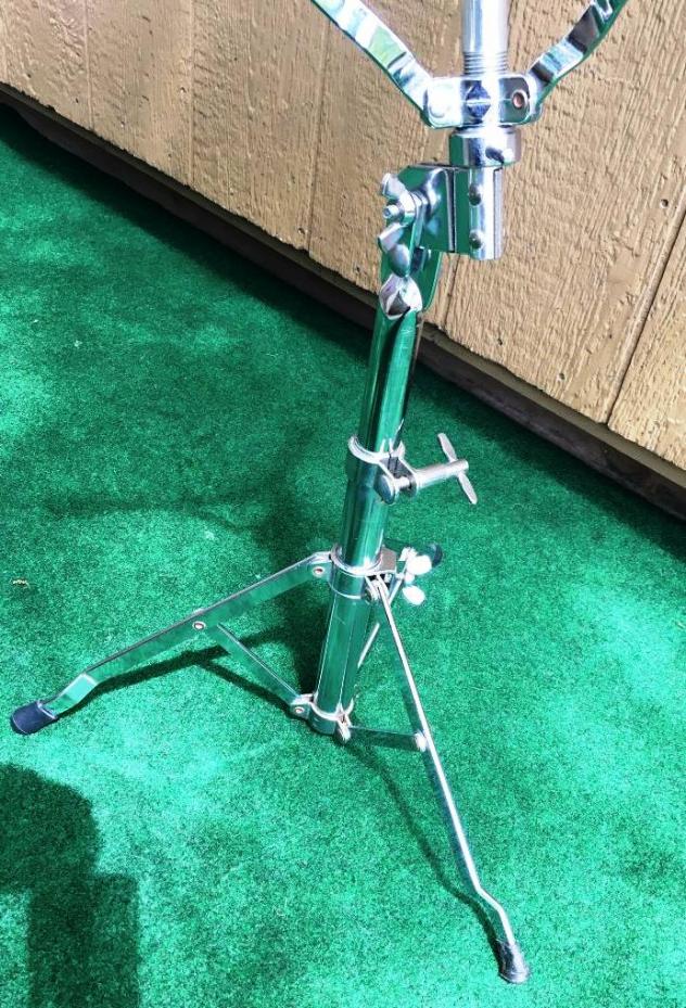 Just got two '70s Ludwig Atlas snare stands to sell... first is the straight leg version. Good player condition. Has been well used but gave it a quick cleanup. Presents fine, works well. Two new rubber tips and one old one. Thinking $25 plus shipping. Please have paypal ready and send me your zip code if interested.
