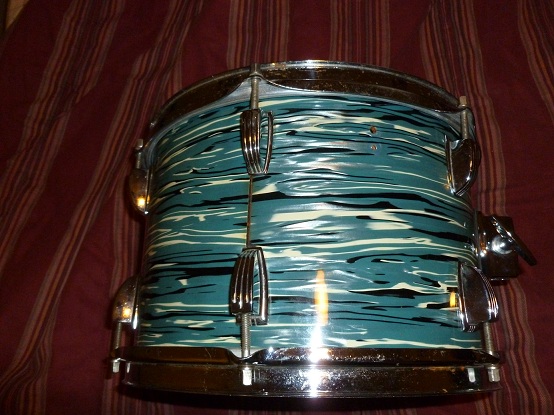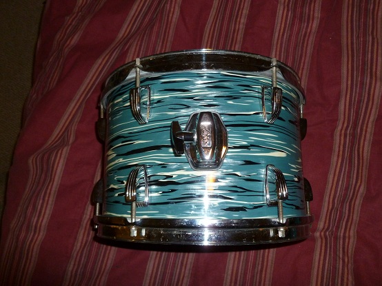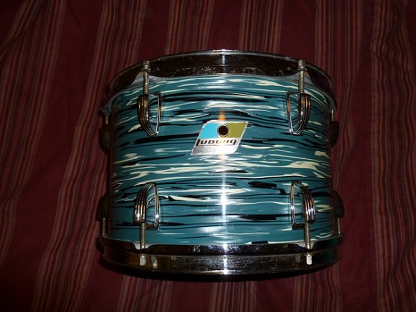 Here's a very clean 8x12 Ludwig b/o badge tom in a blue oyster pearl, (bowling ball) finish. I'm trying to sell it so I can buy a 9x13 tom. This is a 3ply shell with a clear interior. The muffler is missing and a newer tom mount was added, but there are no extra holes, thanks.