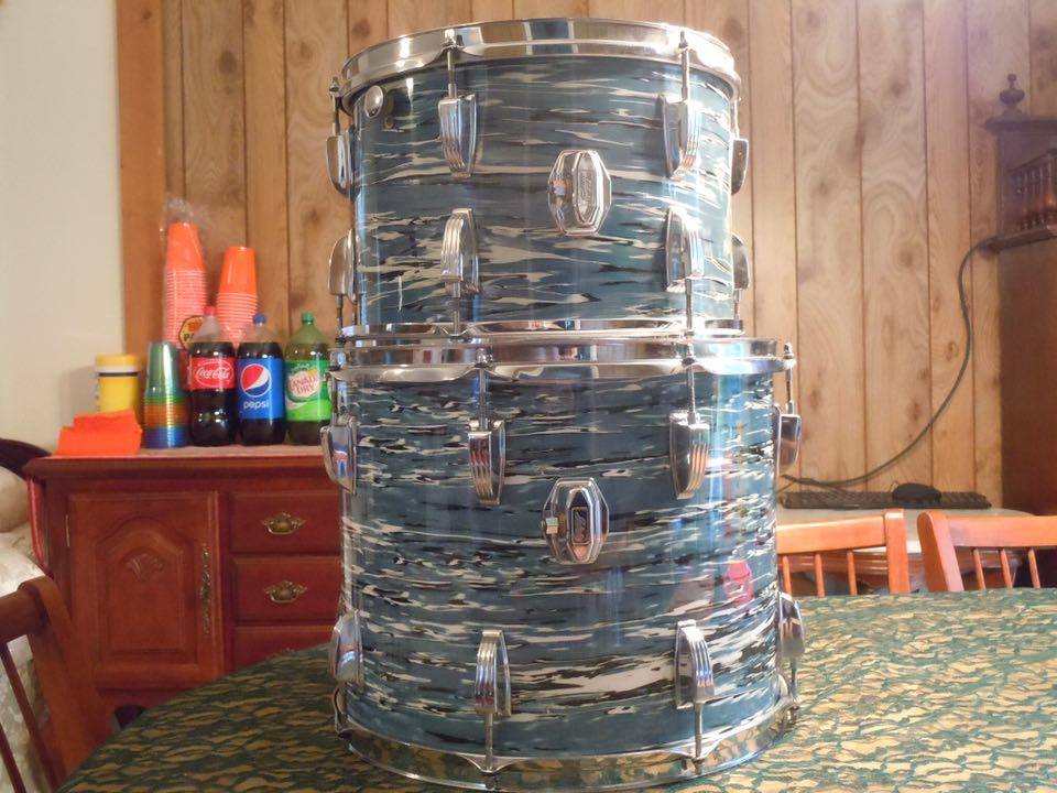 I'm not aware of an Blue Oyster being available to the public. The wrap you are referring to, VF1008 on black, is Black Oyster. It's available from Precision Drum Company.-Mark