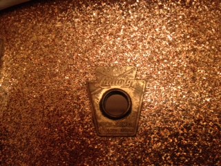 white interior. Think it says 1966 on the inside of the shell. Few scuff marks around, but good shape overall.