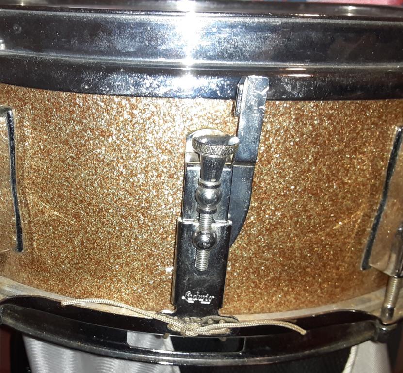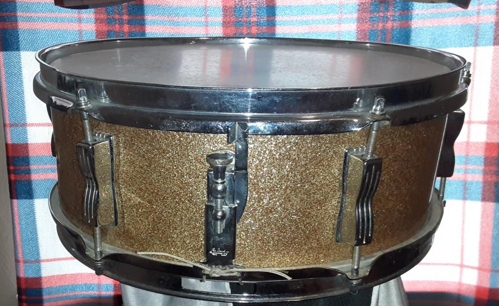 Here's a keystone badge Ludwig Pioneer snare in a champagne sparkle finish.