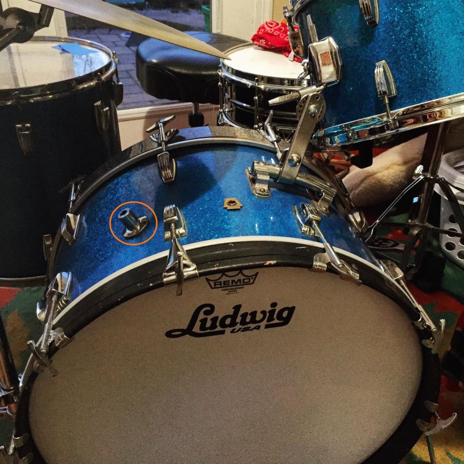 This is not YET a WTB post, more just trying to work out my thougts about this part (circled in orange in picture). I have played a drum with a bass drum mounted cymbal and loved it, but it was a modern DW mount using the original holes on a vintage Slingerland 20." My new kit came with the mount intact, but no arm (and no screw)