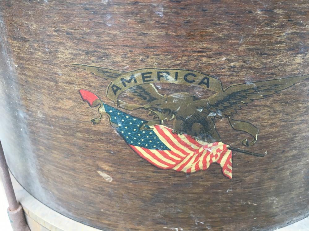 I've been carting this drum around for 20 twenty years ever since my Aunt gave it to me. I couldn't find the badge on the ID page of this site. Can anyone help me determine if it's anything special? The "America" decal makes me wonder if it could be from the WWII era. Thanks!