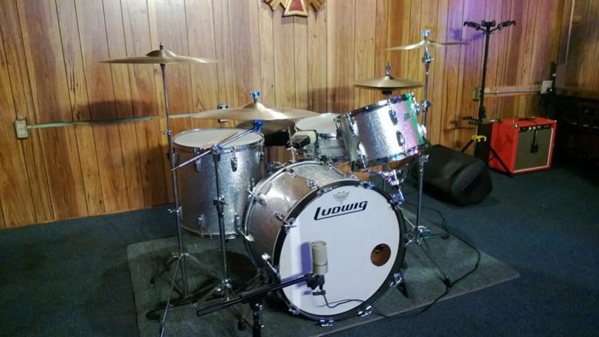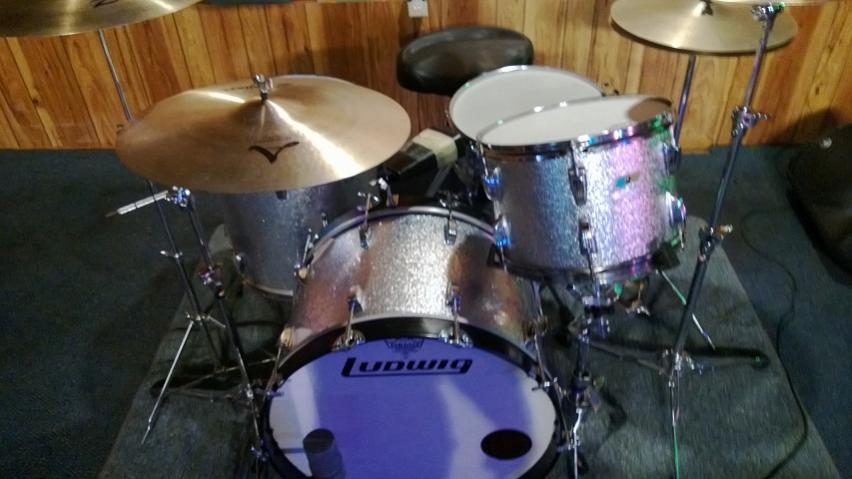 Here's a few pictures of my newly restored Ludwig kit at a gig on Saturday. The drums look great and sounded better, if that's possible, than before the restoration.