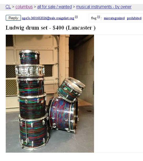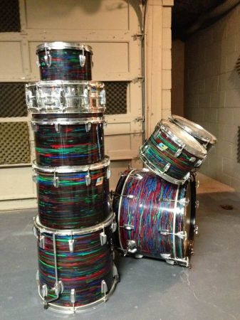 Yep... Psychedelic Red! And, there is still lots of GREEN in your drums! The green color was very sensitive to light and would fade to a cream color with prolonged exposure. Keep those drums away from the light... don't go towards the light!!!! LoLoLoLo