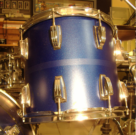 This is a nice, big sounding kit, and is generally in good shape. hate the thin tape, but pulling one off leaves texture difference on shell surface. Thinking this is probably a great candidate for refinishing/wrapping, and if I go that route, I'm wondering, (with 1 up, two down config I've shown) if perhaps either a shallower, (Ludwig) replacement rack tom, or alternately, (and this is the real question) perhaps get the existing 12" rack tom shaved down to shallower depth... I hate the thought of altering good quality drums that might have the potential to be collectible some day, but I think the shallower rack could make this into a cool, contemporary kit. The finish is not all that great, and I could re-virginize the kick, (and even the toms were I to put on some suspension mounts) Thoughts and suggestions from the forum would be greatly appreciated.