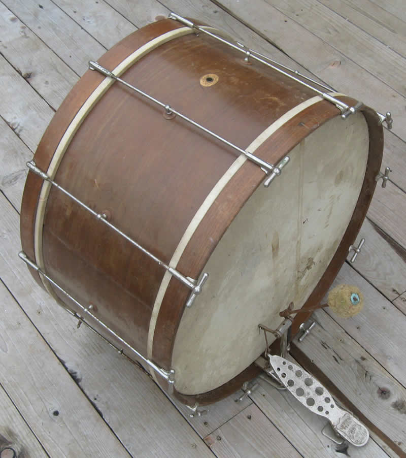 Well, upon closer inspection it looks like the front end of the bass drum is a little warped. The front head has a split on it and it's probably been pulling it out of true for 40 years. The batter side with the in tact head measures 25 1/2 inches inside the hoop (outside diameter of the actual drum shell) all the way around. OK, I'm gonna go saw it up for kindling now...